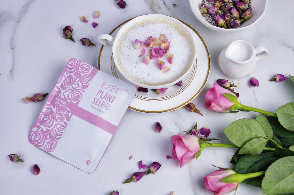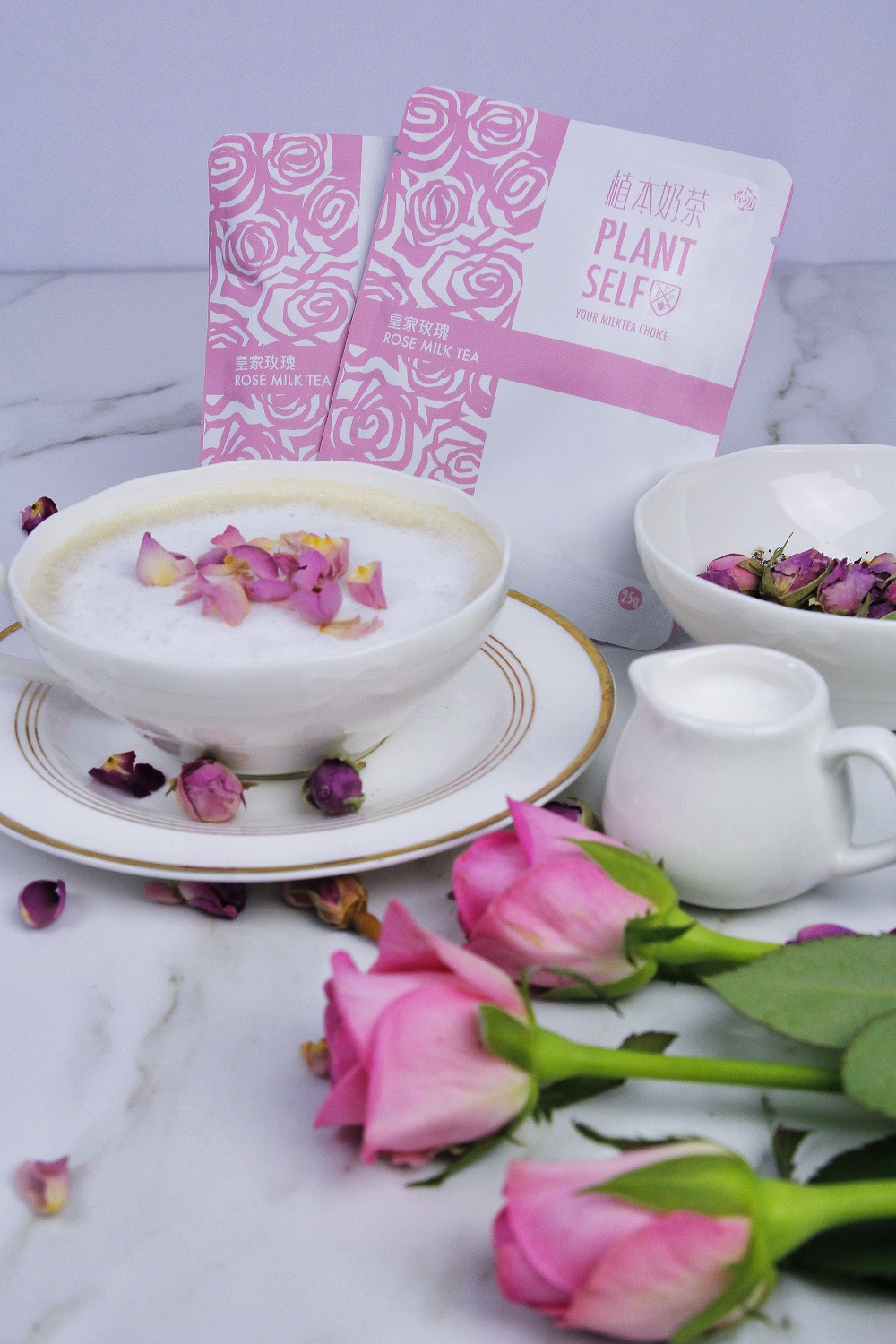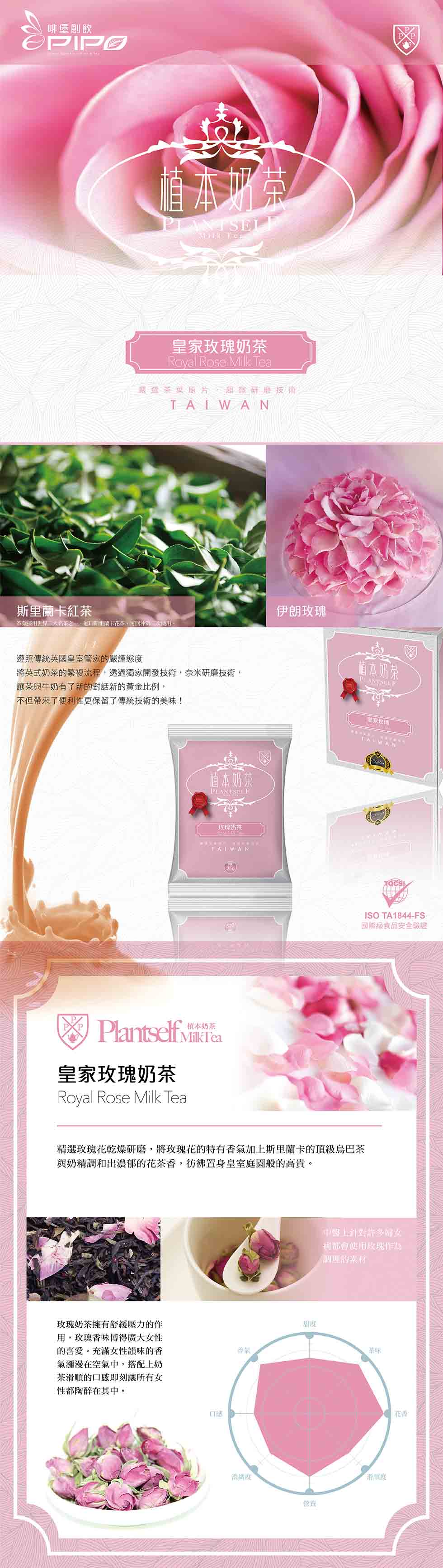 皇家玫瑰奶茶:斯里蘭卡紅茶原片、玫瑰花原片、植物性奶精、紐西蘭奶粉、糖